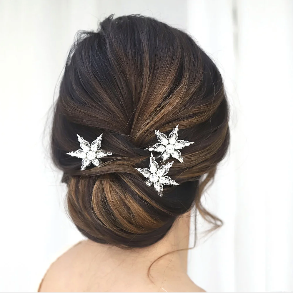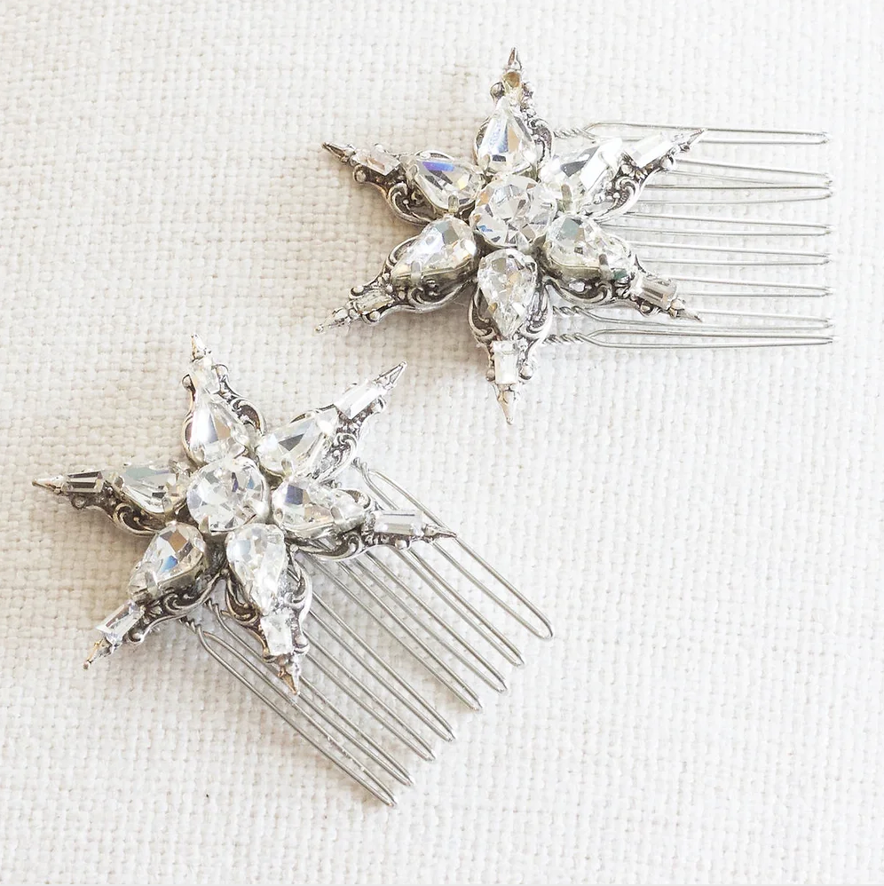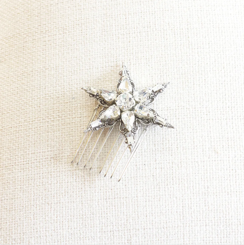 Star comb ~ clusters of Swarovski crystals in varying shapes accent a silver star filigree; tuck them into your up-do for a hint of sparkle or for a more dramatic look, add more.