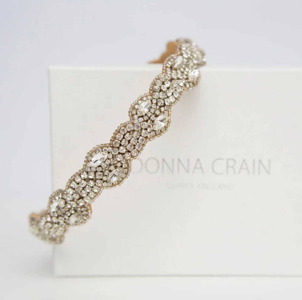 A symmetrical rhinestone and Swarovski crystal headdress from our timeless range. This beautiful headdress has the most amazing sparkle and perfect for contemporary or vintage style dresses. It is the perfect choice for loose up-do hairstyles or a more relaxed hairstyle.